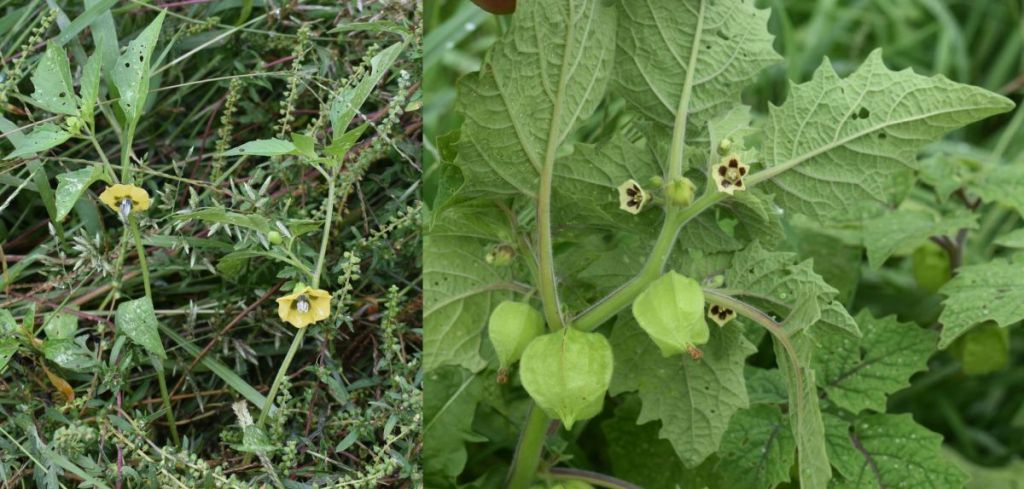 Two nightshades were growing as weeds near the compost pile, probably both wild-growing plants of cultivars. I suspect the one on the left with the larger flowers and rather smooth leaves to be a variety of tomatillo (possibly Physalis philadelphicus or P. ixocarpa). The one on the right, with the smaller flowers and hairy leaves is probably a variety of ground cherry (possibly Physalis peruviana). I don’t usually see these species growing in the wild, so don’t feel completely confident with their identification. If anybody has any alternative suggestions, I’d be happy to hear them!