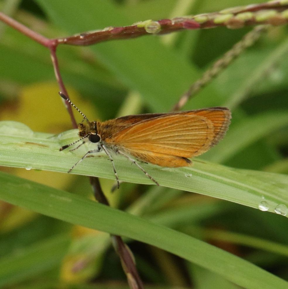 It was spitting rain on the 30th of August when we visited Transgenerational Farm. Neither the lateness of our visit nor the weather were propitious for seeing abundant butterfly life and, in fact, we only noted a quartet of butterflies – Pearl Crescent, Eastern Tailed-blue, Least Skipper, and Monarch. Nonetheless, the abundant ‘edge habitat’ that Claudia noted early makes me think that a sunny July visit would have resulted in substantially more sightings. And, besides, butterflies aren’t the only game in town…