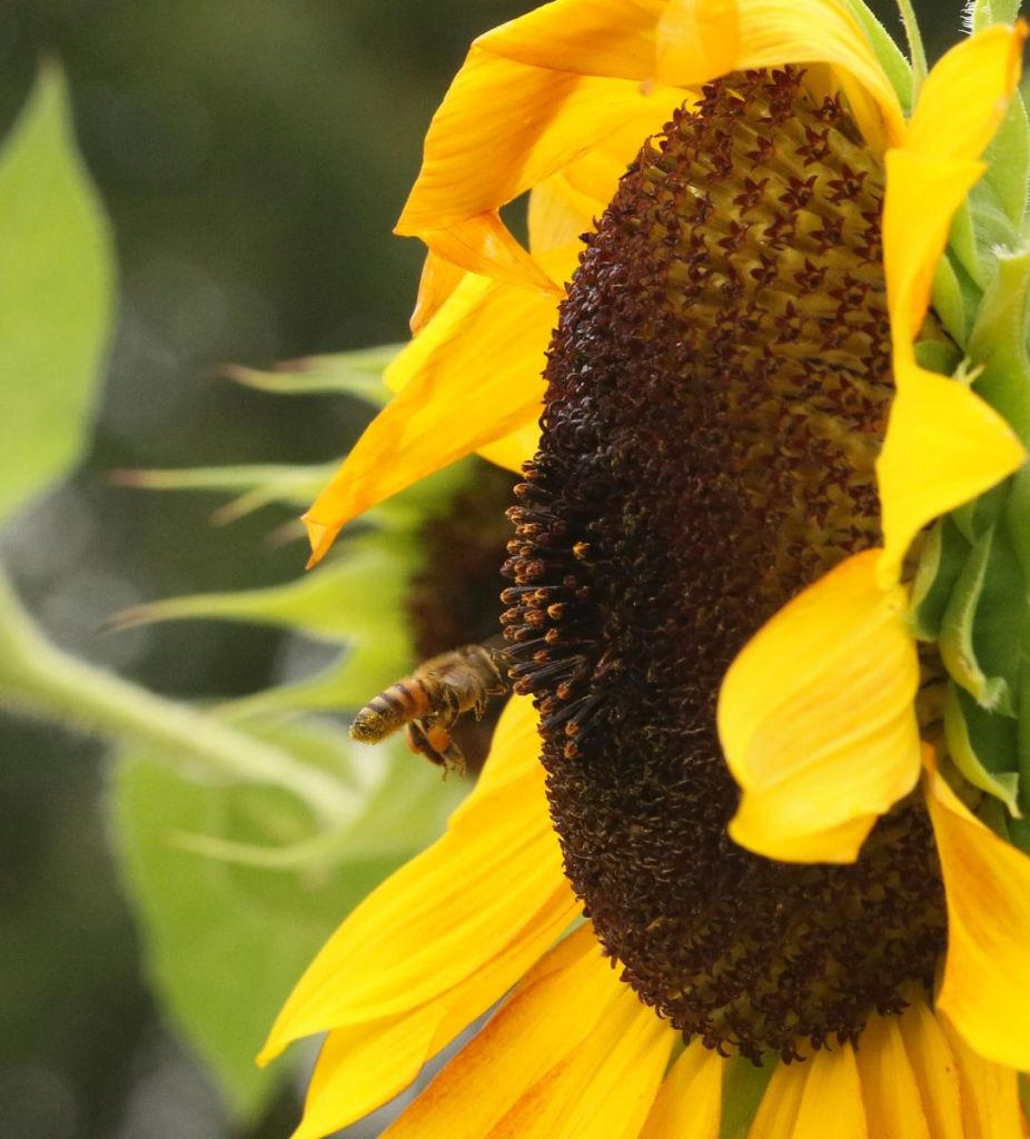 A Triepeolus bee about to get sucked into a Sunflower vortex (just kidding). These bees parasitize long-horned bees (see below).