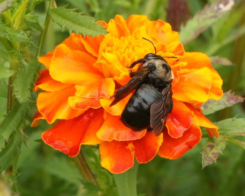 Because they nest in old pithy stems, leaving standing stalks of goldenrod, raspberries, blackberries, elderberries, sumachs, and Queen Anne’s Lace can provide habitat. Cutting or breaking some of these at least a foot or so from the ground at the end of the first growing season will then ‘open the door’ and, assuming they are left undisturbed during the following growing season, these stalks could become valuable Ceratina nesting resources.